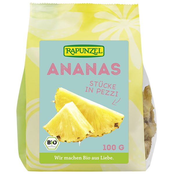 Das goldgelbe Fruchtfleisch der Ananas besticht durch den herrlich süßen und fruchtig-säuerlichen Geschmack. Die Früchte werden für die Ananasringe vollreif geerntet und schonend getrocknet, so dass ihr exotisches Aroma erhalten bleibt.