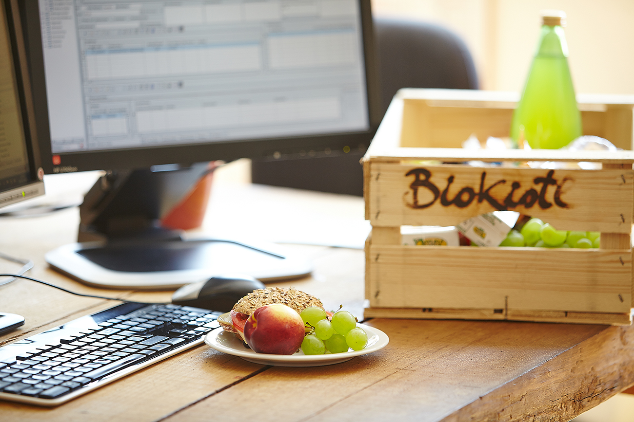 Das Bürokistl enthält frisches, sofort verzehrbares Obst und Gemüse, sowie Fingerfood, Säfte und Milchprodukte. *Foto zeigt Beispielinhalt