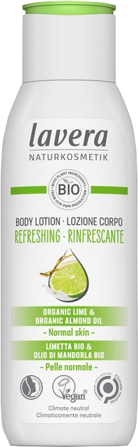 Die Body Lotion Erfrischend mit Bio-Limette & Bio-Mandelöl für normale Haut.