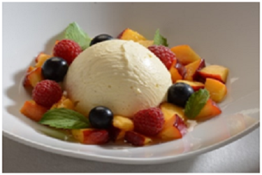 Eigelb mit Honig (oder Vollrohrzucker) und Naturvanille sehr cremig rühren. Mascarpone vorsichtig unterrühren. Sahne steif schlagen und unterheben. Die Masse in Förmchen füllen. Zugedeckt für mindestens 12 Stunden in den Gefrierschrank geben. Für die Garnitur die Melone in kleine Stücke schneiden und mit Honig und Naturvanille mischen. Vor dem Servieren die Melonen auf Teller verteilen. Die Förmchen kurz in heißes Wasser tauchen und das Halbgefrorene aus der Form auf die Teller stürzen. Mit Beeren und Melisseblättern garnieren.Dieses Rezept wurde von „Rita Bernardi" erstellt.