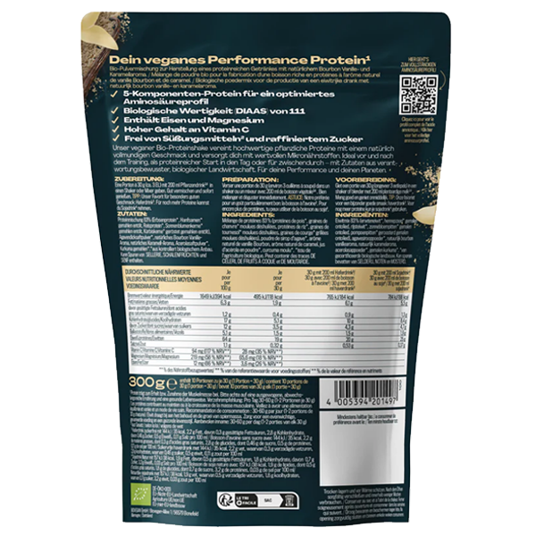 Verwendung: 30 g Proteinpulver mit Pflanzendrink deiner Wahl mixen. Für besonders guten Geschmack empfehlen wir Haferdrink und für mehr Protein Sojadrink. Optimal nach dem Workout oder auch als sättigender Snack für zwischendurch. Zudem vielseitig einsetzbar in Smoothies, Bowls oder zum Backen.
