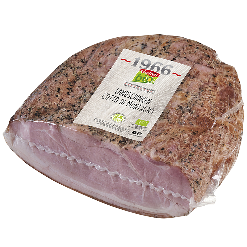 Gekochter Schinken aus der Schweinekeule, würziger, rustikaler, rauchiger Geschmack mit Kräutern verfeinert, Laktose- und Glutenfrei.