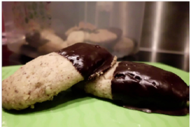Alle Zutaten zu einem glatten Teig kneten und für einige Zeit kalt stellen. Aus dem Teig Rollen formen, 4-5 cm lange Stücke abschneiden und auf ein Backblech legen. Bei 160 C etwa 10-12 Minuten backen.