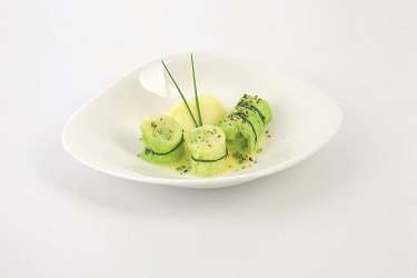 Disporre gli involtini con il purè sui piatti, irrorare con il fondo di cottura, cospargere con l’anice e l’erba cipollina, guarnire con steli di erba cipollina e servire.