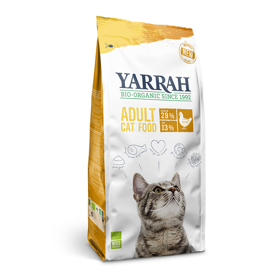 Deliziose crocchette con pollo, piselli e ortica biologici per tutti i gatti. Un pasto completo, nutriente e molto appetitoso per il tuo gatto. Solo cibo puro, senza additivi artificiali, pesticidi e OGM.