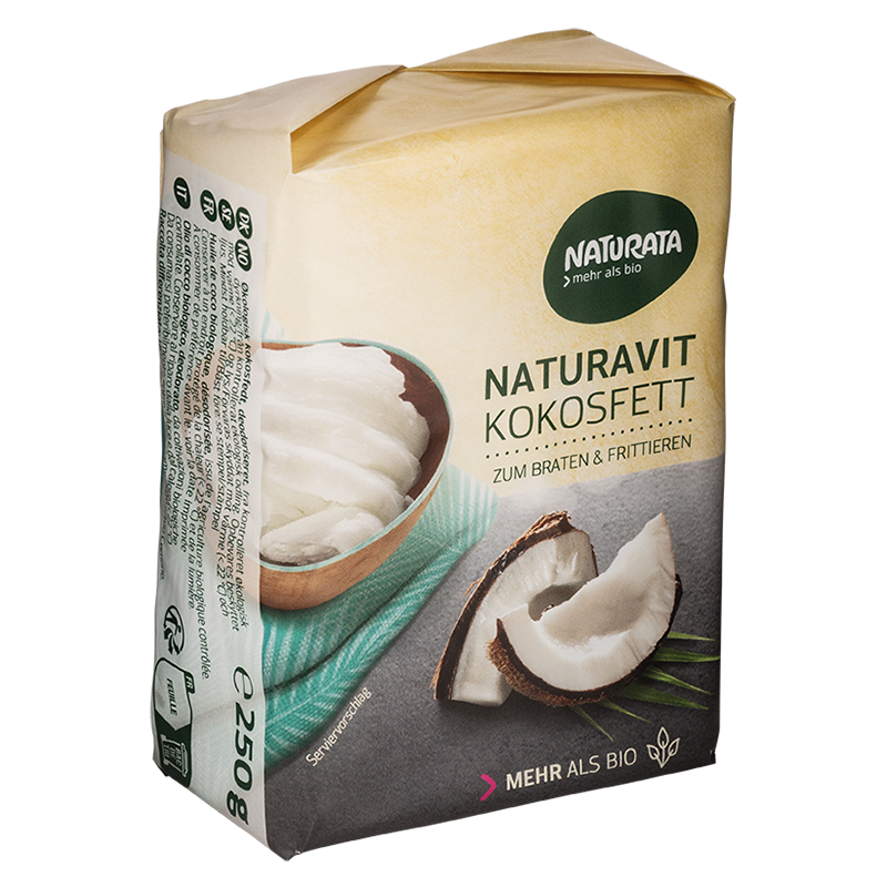 Naturata grasso di cocco è ideale come grasso di tostatura e frittura. Dovrebbe essere combinato con altri oli vegetali.